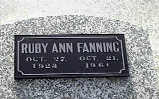 Fanning, Ruby Ann 27 Oct 1923 21 Oct 1964