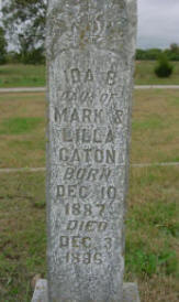 Mark Caton died June 29, 1908 and Lilla Overstreet Caton October 26, 1939. They are buried in Worsley Cemetery, Bronaugh, Missouri. Daughter Ida B. Caton died December 3, 1896. William S. Caton died October 6, 1967 in Los Angeles County, California.