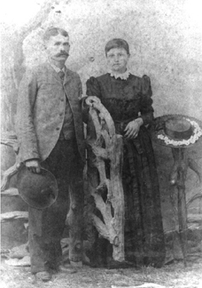 This is a photograph of William Robert Edwards and his wife, Nancy Jane Jobe Edwards. This is probably a wedding picture taken in Cedar County about 1871. William Edwards was the son of Horatio N. Edwards and Elizabeth Dillingham Edwards. He died at his home one mile east of Warwick in Dover Township, Vernon County, Missouri on December 17, 1887, after becoming ill while digging a well. He was 37 years old. His children were Bell Edwards Wickliff and Jesse L. Edwards. Nancy Jobe Edwards was said to have died about 1880.