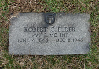 Last Civil War Veteran Passed On Funeral services for R. C. Elder, who died in Harwood Sunday, December 8, at the home of his daughter-in-law, Mrs. Callie Elder, a sister of Boyd Maddox of Metz, were held Tuesday afternoon, December 10, at the Christian church in Harwood. Mr. Elder was 102 years old and was Vernon county's last Civil war veteran. The Metz Times, Metz, MO. December 20, 1946