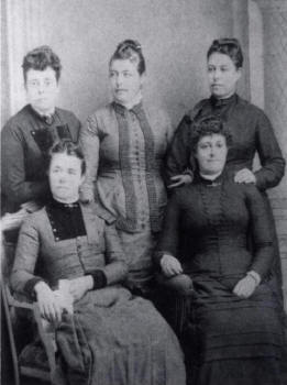 Married daughters of Jesse & Rebecca (Hurst) Ewell Front: Santa Fe Clementine Welch, Jessie Jewett. Back: Ellen Boughan, Florence Clutter, Colorado Robinson.