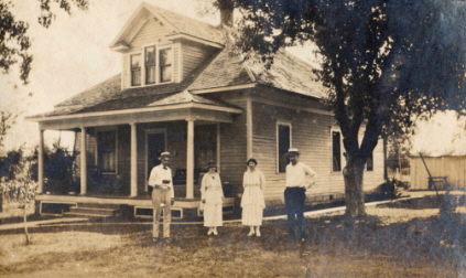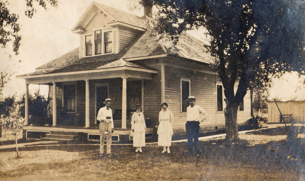 Clara and Frank Harner, and Don, Ruth, and Harold at the Harner home, West Walnut, Nevada, ca 1920. Photo by Harold Harner. Contributed by Tom Scheerer