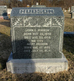 JOHN G. HUDSON BORN MAY 22, 1832 DIED AUG 20, 1908 HIS WIFE MARY HUDSON BORN AUG 27, 1833 DIED JULY 20, 1904 Pryor Creek Cemetery, Metz, Vernon County, Missouri