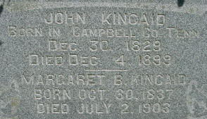 JOHN KINCAID Born in Campbell Co. Tenn. Dec. 30, 1829 Died Dec. 4, 1899