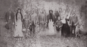 Left to right: Ben, Laura, Elmer, John, Flay, Sara, Alva, Lizzie Shields, baby Alfa, Ben Shields, Dora. Photo contributed by Donna Sherron |