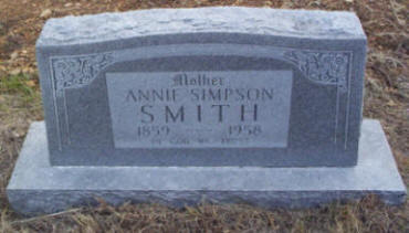 Annie E. (Edwards) Simpson Smith March 8, 1859 - February 8, 1958 Bicket Cemetery Vernon County, Missouri