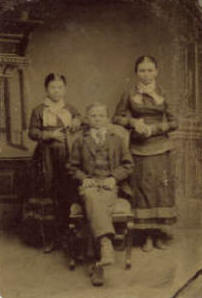 Tintype picture of children of John and Caroline Wray: Annie, James, and Mary Ella. This picture is estimated to have been taken about 1879.