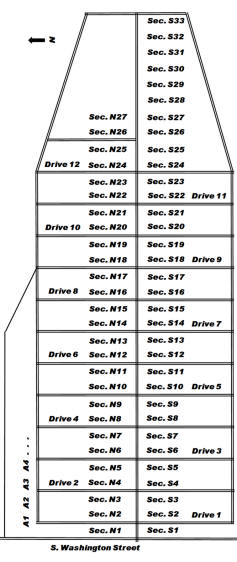 Description: Active; Maintained; Earliest burial is 1870. The Cemetery Association was formed 1888. Legal: NWSE Section 34, Township 36N, Range 31W. Coordinates: 37.854534, -94.335533 Directions: This cemetery is located off the east side of Nevada, MO. From Nevada, 1 mile east on U.S. 54, 1/2 mile north on 1700 Road, 1/2 mile west on Mission Road, 1/4 mile south on 1650 Road. The cemetery is on the east side of the road. Layout: Listing in each section begins at the "x" and rows snake. |