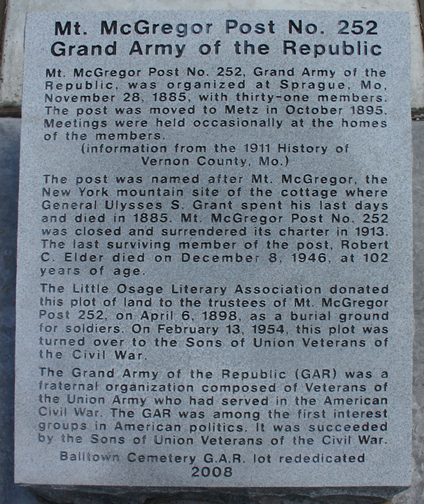 Mt. McGregor Post No. 252, Grand Army of the Republic